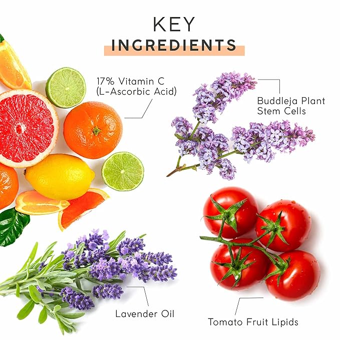 - BRIGHTENING SERUM: Formulated with 17% Vitamin C and Buddleja Plant Stem cells to revitalize and strengthen the skin for healthy aging