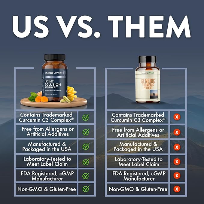 Mt. Angel Vitamins - Joint Solution Advanced, with Curcumin C3 Complex, Glucosamine, Hyaluronic Acid, Bromelain, Collagen Type 2 & MSM, Improves Fluidity & Supports Joint Comfort (60 Capsules)