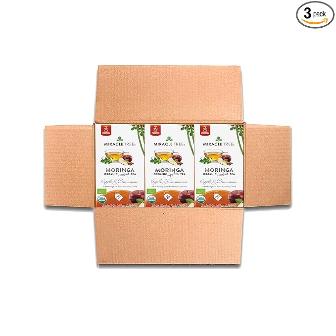 Miracle Tree - 3 Count of Organic Moringa Superfood Tea, 25 Individually Sealed Tea Bags, Apple & Cinnamon (Keto, Detox, Energy/Immunity Booster, Vegan, Gluten-Free, Organic, Non-GMO, Caffeine-Free)