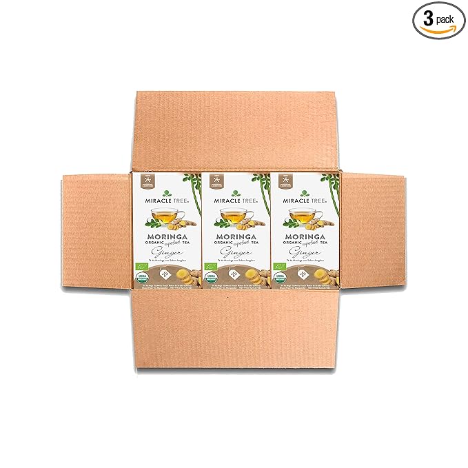 Miracle Tree - 3 Count of Organic Moringa Superfood Tea, 25 Individually Sealed Tea Bags, Ginger (Keto, Detox, Energy/Immunity Booster, Vegan, Gluten-Free, Organic, Non-GMO, Caffeine-Free)