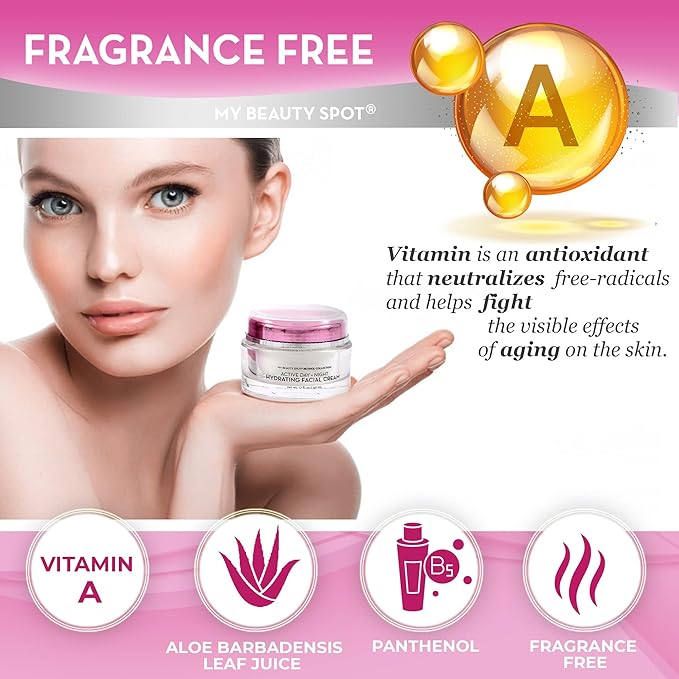 - Moisturizer Face Cream by My Beauty Spot - ACTIVE DAY + NIGHT HYDRATING FACE MOISTURIZER Infused with Revitalizing Retinol to Help Reduce Appearance Of Fine Lines