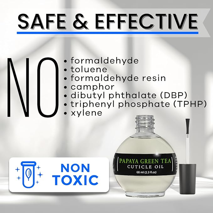 Moisturizing Cuticle & Nail Care Oil 2.3 Fl Oz - Papaya Green Tea Scented – Infused with Jojoba Oil, Aloe, Vitamin E – Nail & Cuticle Hydration, Repair, Moisturizer, Strengthener, Growth