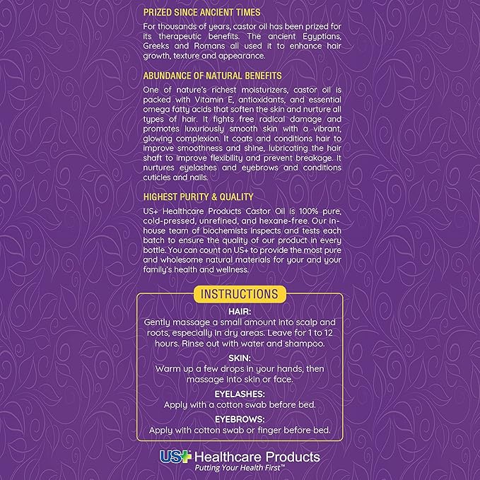 20oz 100% Pure Castor Oil - Cold-pressed, Unrefined, Hexane-free - BPA Free Plastic Bottle - USP Grade - Premium Quality for Healthy Skin & Hair