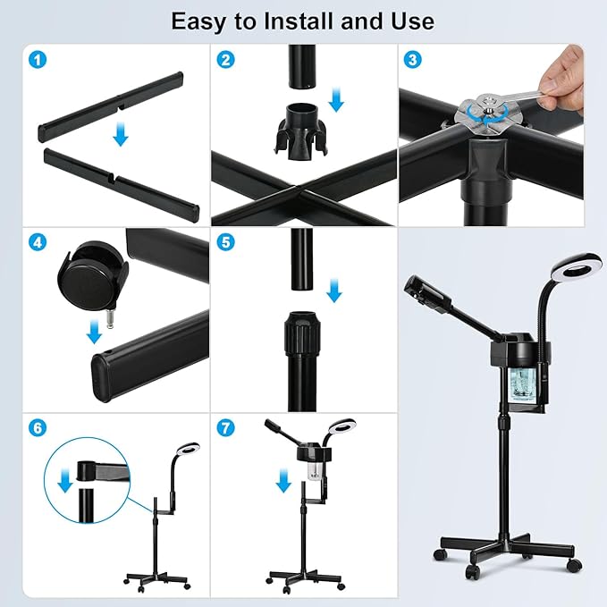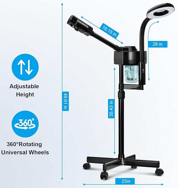 - 【Professional 2 IN 1 Facial Steamer】Facial steamer for esthetician and 5X magnifying lamp which is a very useful multi-functional beauty equipment. Facial steamer is used for deep cleansing of the face, it can open pores, soothe dry skin, and it is a good device for skin care.