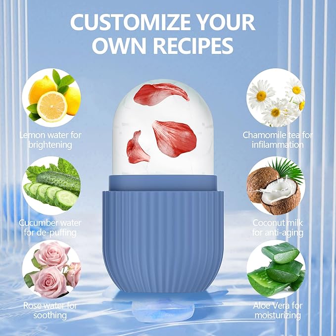 - Customize Preferences - Facial ice roller can enhance the skin care effect as per your creativity and customized formula according to your specific skin needs, such as lemonade for whitening, and coconut for improving skin. Even you can use a juicer to squeeze them into juice, then add water, essential oils, and roses to the ice tray.