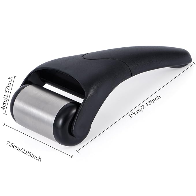- ICE ROLLER FOR FACE & EYES: The black ice roller is made of high-quality ABS and stainless steel, with a length of 7.4 inches and a width of 3.9 inches. It is safe and has a smooth surface that won't scratch your skin