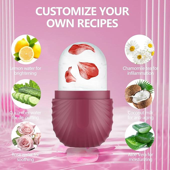 - Customize Preferences - Facial ice roller can enhance the skin care effect as per your creativity and customized formula according to your specific skin needs, such as lemonade for whitening, and coconut for improving skin. Even you can use a juicer to squeeze them into juice, then add water, essential oils, and roses to the ice tray.