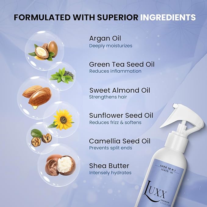 - ✔️ SAFE AND INCLUSIVE FORMULATION — Enriched with safe and hair-boosting ingredients, the leave-in conditioner is formulated for all hair types. The product is free of toxins like paraben and sulfate and is gentle on your hair. It includes all hair textures and types, including natural, colored, and chemically treated hair. Be assured that the product has not been tested on animals. With just a few sprays, strengthen your hair from root to tip