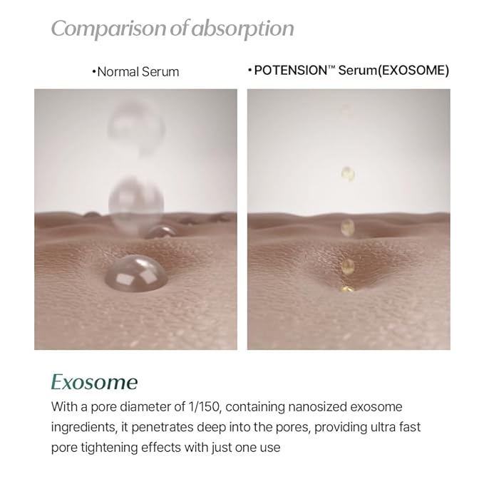 - [Advanced Pore Refining with Exosome Technology] Discover Potension’s cutting-edge pore care serum, crafted with advanced exosome technology to visibly minimize pores and smooth skin texture. Achieve a balanced, refined complexion with this innovative formula.