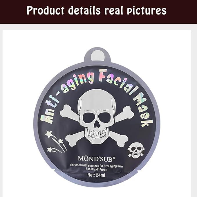 MOND'SUB Skull face mask,Hydrating and Soothing Facial Mask,Enriched with Peptides,Firm aging skin 8 packs-Spa Beauty Masks