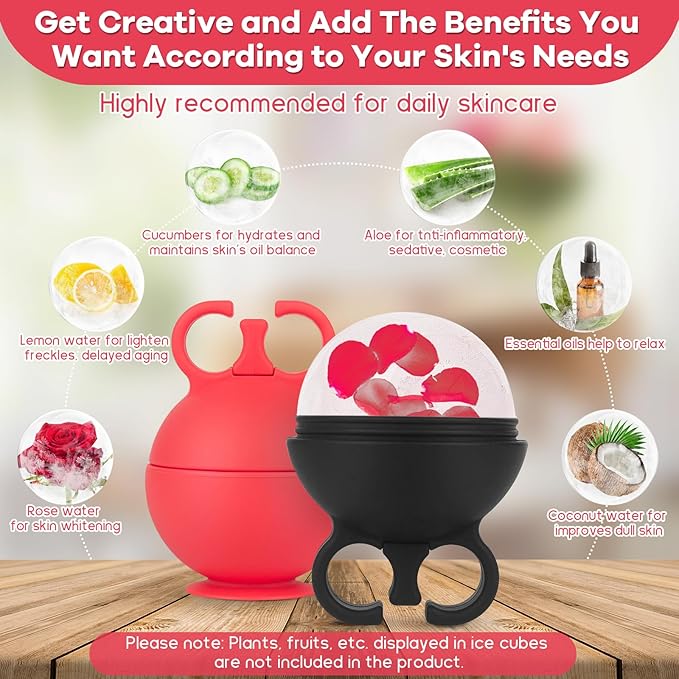 - HIGH QUALITY & MONEY SAVING: Ice roller for face made of high-quality silicone material, Reusable, durable, BPA free, face massager tool is made of food grade silicone. Pack of 2 for alternate use, which can save you money. DIY beauty recipes according to skin needs, lemon water whitening, green tea anti-inflammatory, cucumber water reduces swelling, mint leaves refreshing, coconut juice improves skin, have a spa experience at home. ice face roller ice globes for face ice for face ice facial