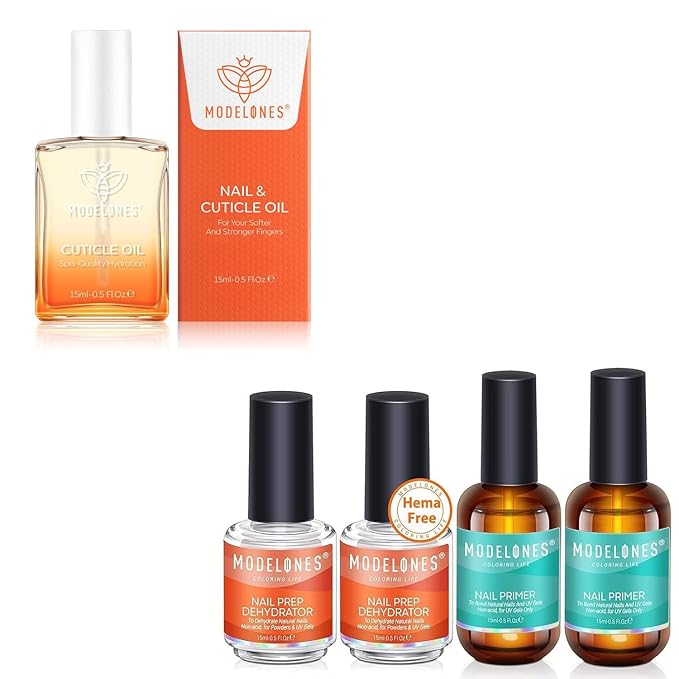 Modelones 4Pcs Nail Dehydrator and Primer Bundle with Cuticle Oil