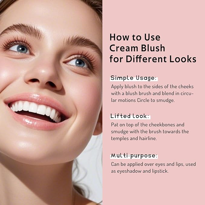 - VERSATILE CREAM BLUSH: This makeup cream Blush is suitable for various makeup needs, and can be applied to the cheeks, lips, and eyes. With a variety of color options, it enhances all skin tones for a natural, radiant finish.