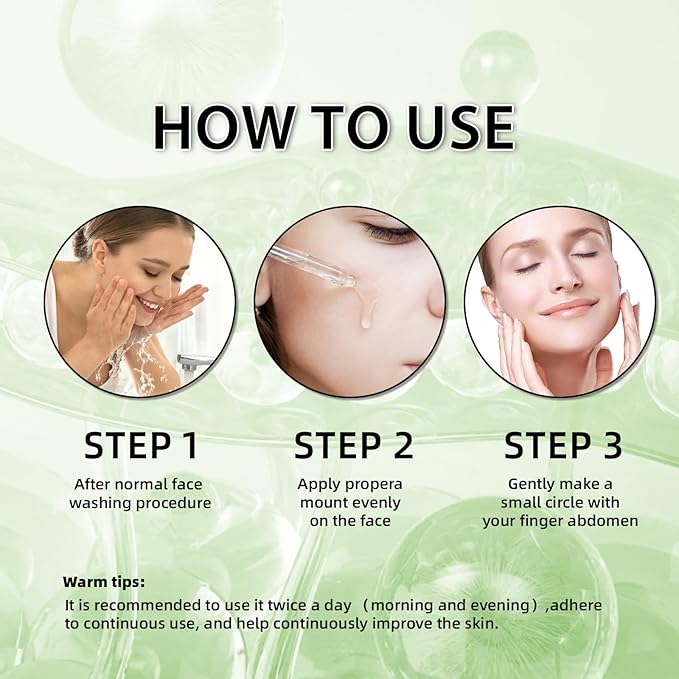 - 【Usage】:First, simply clean your face with water, then take an appropriate amount of serum and apply it evenly on your face, gently massage it until it is completely absorbed