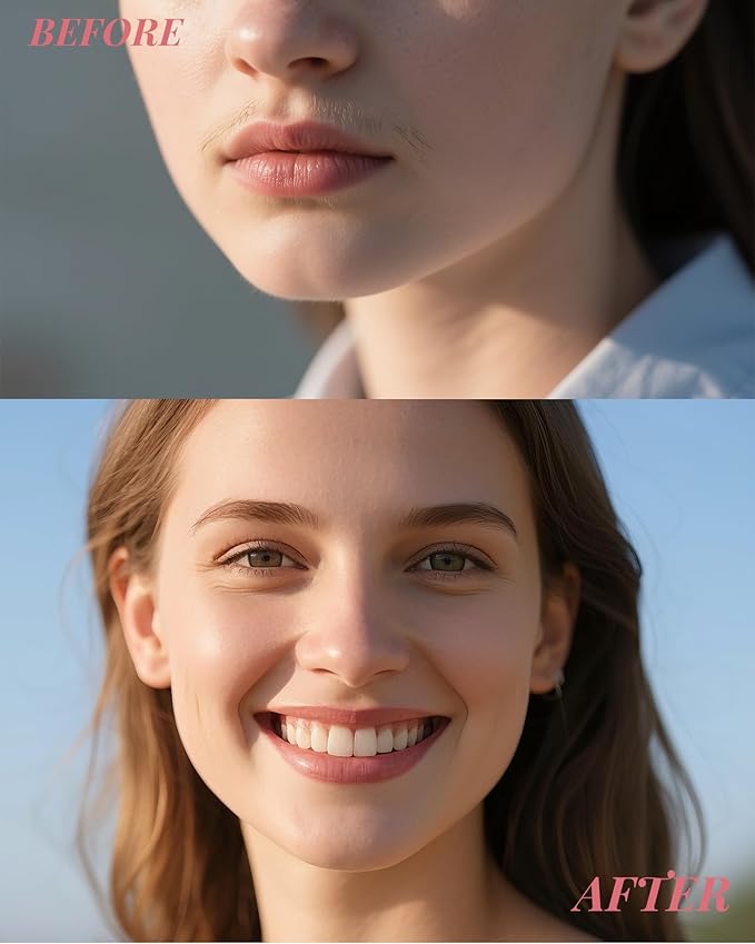 - Multi-Zone Precision Hair Removal: Designed for fine facial hair, the specially formulated formula is precisely adapted to the highly sensitive areas of the face, such as around the eyebrows and lips. The ingredients are skin-friendly and moisturizing, suitable for all skin types. Designed for fine hairs, it reduces the risk of damage from repeated operations and maintains a long-lasting silky touch.